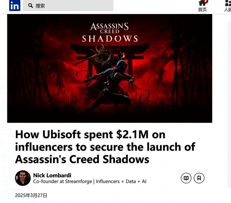 上个月26日,推主Grummz怀疑育碧花钱收买支持“恐怖主义”的主播Hasan Piker,以宣传《刺客信条:影》游戏,随后马斯克加入这场舆论战,批评Hasan Piker为了钱在推广一款“垃圾游戏”。现在有报道指出,育碧在网红主播上投入了210万美元,确保《刺客信条:影》平安落地,疑似坐实了Grumzz的怀疑。