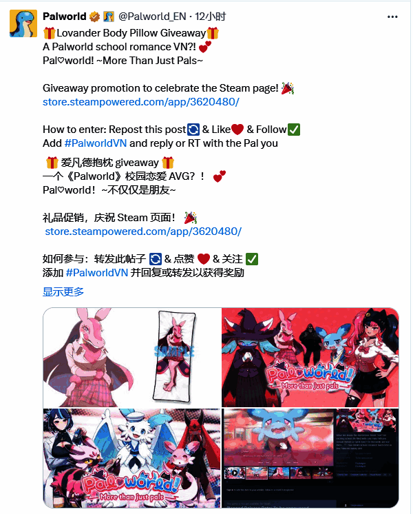 开发商Pocketpair的通讯总监兼发行经理John'Bucky'Buckley也发帖说:“你们一直都在问,所以现在就给你们——《幻兽帕鲁》恋爱模拟游戏的Steam页面上线了,还有一段展示更多角色的新预告片。好主意?坏主意?谁在乎!总会有人会高兴的!”