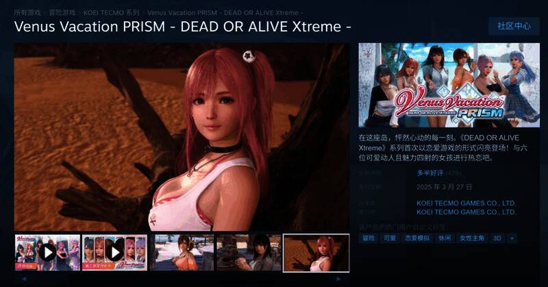 《维纳斯璀璨假期:死或生Xtreme(Venus Vacation PRISM - DEAD OR ALIVE Xtreme -)》于本月27日正式发售,Steam国区298元,支持简体中文。截至目前,游戏在Steam上共获得429个评价,好评率73%,为“多半好评”。