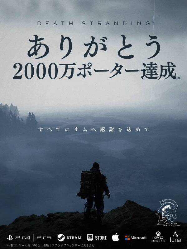 我们很荣幸地宣布,截至2025年3月31日,《死亡搁浅》在全球范围内共吸引了2000万玩家*。