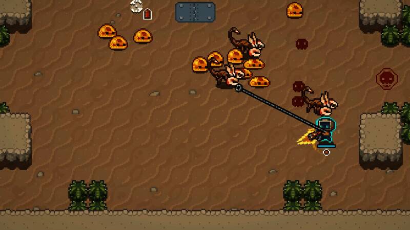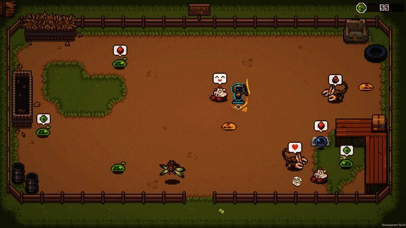 这是一款俯视角动作RougeLite游戏。挑选武器与成群的异星生物战斗。从各种升级模块与道具中构筑独特的战斗风格。捕捉异星生物并使用其能力,或者将其带回基地产出材料。收集更多可用角色,征服这个星球吧!