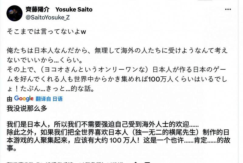 齐藤阳介并没有完全否定海外市场,而是表达了一种“立足本土,放眼全球”的思路。齐藤认为,作为日本人,他们不需要强行去适应海外的审美或期待,而是应该先做好自己擅长的东西——带有浓厚日本特色的游戏。然后,凭借这种独特性的吸引力,自然会在全世界找到喜欢这类作品的玩家,哪怕数量可能有限(比如“凑个100万”),但这已经足够形成一个有规模的受众群体。