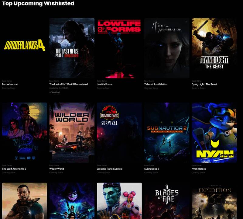 而在Epic上,愿望单第一名是《无主之地4》,随后是《最后的生还者2:重制版》,国产游戏《湮灭之潮》位列第四,而《光与影:33号远征队》位列第12名,这意味着《光与影:33号远征队》在主机端更受玩家追捧,可能将是销量大头。