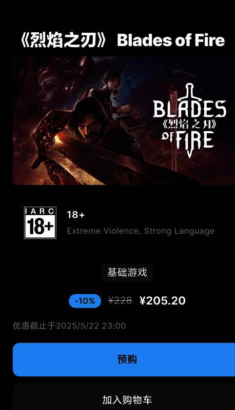 《烈焰之刃》将于2025年5月22日发售,登陆PC(Epic商城),PS5和Xbox Series X|S,Epic国区折后价205.2元。