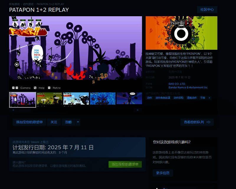 此外,《啪嗒砰1&2合集》Steam页面上线,该作将于7月11日登陆PC Steam平台,支持简体中文。