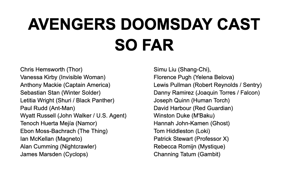 “他们都回来了……却一步步走向,毁灭之日。第五部《复仇者联盟》系列电影《复仇者联盟5:毁灭日》部分演员阵容首次曝光,饰演“杜姆/毁灭博士”小罗伯特·唐尼领衔亲自揭晓。”