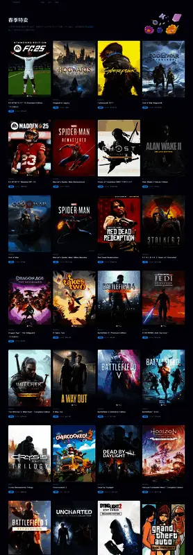 Epic Games “春季特惠”活动现已开启!促销截止至4月9日晚上11点。多款Epic 平台游戏作品都正在以折扣价发售中,最低低至2.5折特惠价格:《双人成行》,《赛博朋克2077》等等。好了,让我们一起来看看游戏促销列表吧!