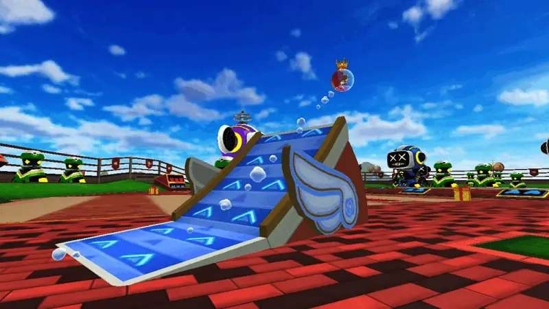 此新增关卡是一个飘着花香的空中庭院。玩家需要利用飞出的抽屉或传送带发射台击败依靠滑动面板移动的巨大机器人。
