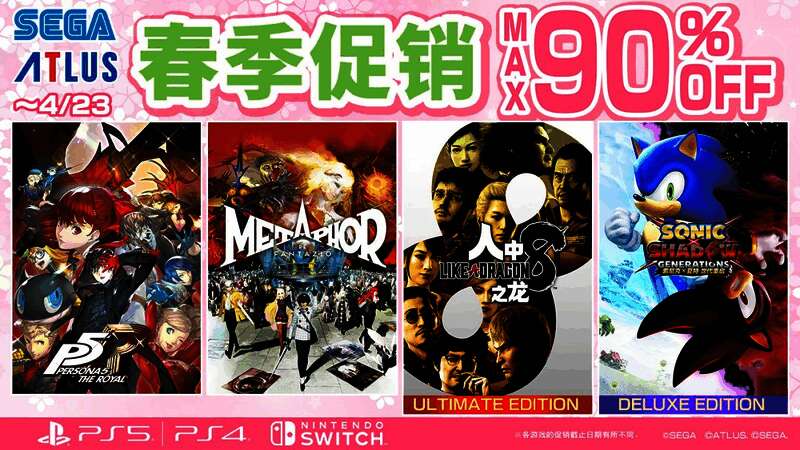 世嘉现于PlayStation™Store和Nintendo eShop内举办“SEGA春季促销 ”活动,部分在售主机游戏以限时特惠价回馈玩家,本次促销将于2025年4月23日结束。