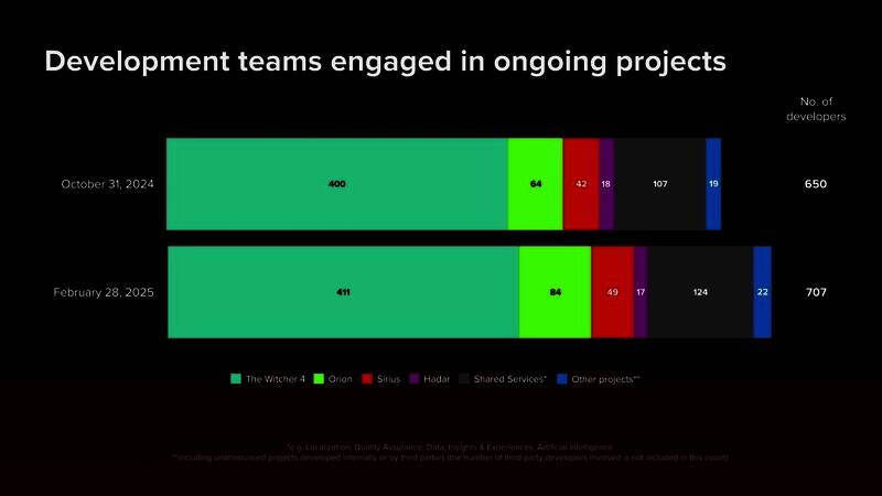 从去年11月底到今年2月底,CDPR共招聘了57名新员工。其中11人加入了《巫师4》庞大团队中,使团队总人数增至411人。