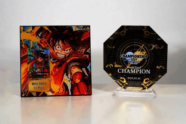 【2025年3月16日,日本】—— 在3月16日于日本落幕的《航海王卡牌对战》(ONE PIECE CARD GAME,以下简称OPCG) 2024世界决赛中,中国大陆选手阿保凭借出色的表现,以2-1的比分战胜日本选手,成功问鼎2024年世界总决赛,成为OPCG赛事历史上首位来自中国大陆的世界冠军。为了纪念这一里程碑式的成就,赛事官方特别颁发了简体中文版的冠军卡,这一殊荣在历届冠军中显得格外珍贵。