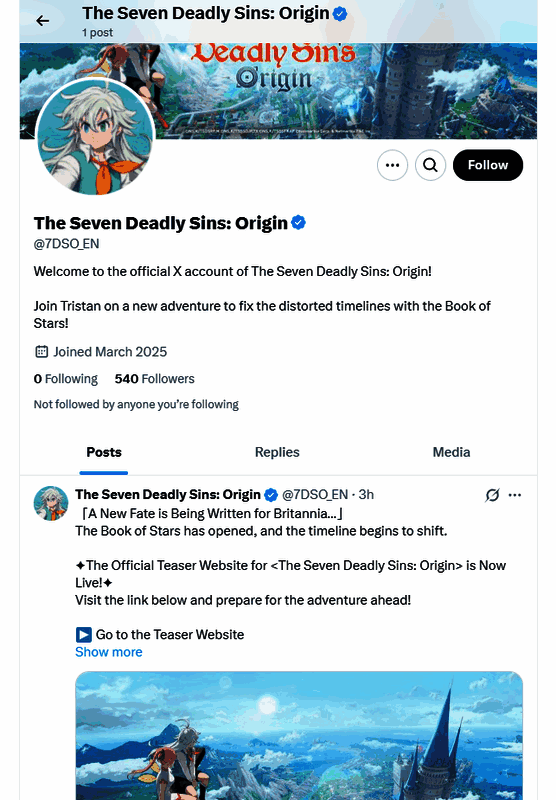 近日,发行商Netmarble和开发商Netmarble F&C开通了开放世界动作RPG游戏《七大罪:起源》的官方宣传网站和社交媒体账号(Youtube),该游戏Twitter账号已在2022年开通。《七大罪:起源》将于2025年登陆主机、PC、iOS和Android平台。