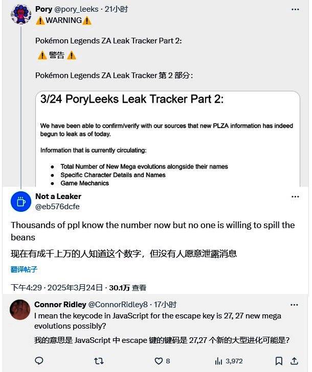 据知名爆料人Pyoro(此前曾多次准确泄露任天堂直面会内容)透露,本作将包含27种全新Mega进化。这个数字的暗示相当巧妙——有粉丝发现Pyoro在社交媒体上让网友“看看键盘左上角”,而ASCII码27对应的正是ESC键。