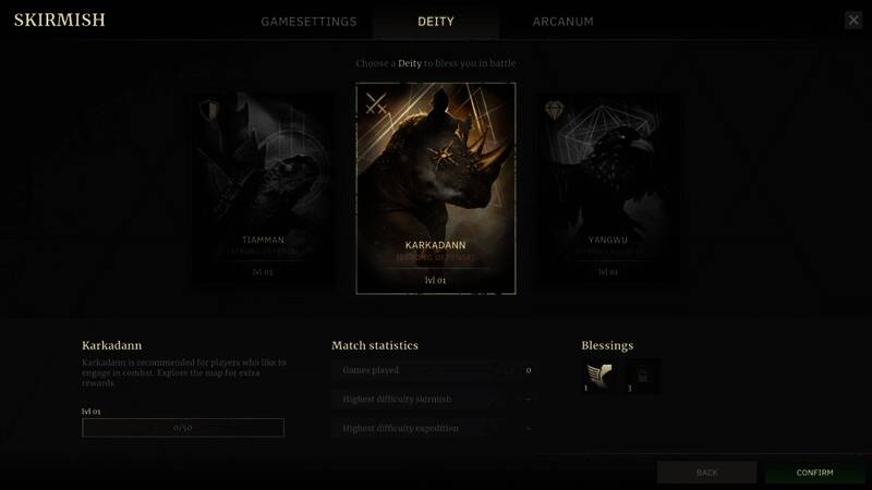 在众多神祇中选择一位,他们的神圣力量将助你踏上旅程。神的祝福会决定你的生死存亡。你可以选择投身于攻击、防御,还是探索其他道路?