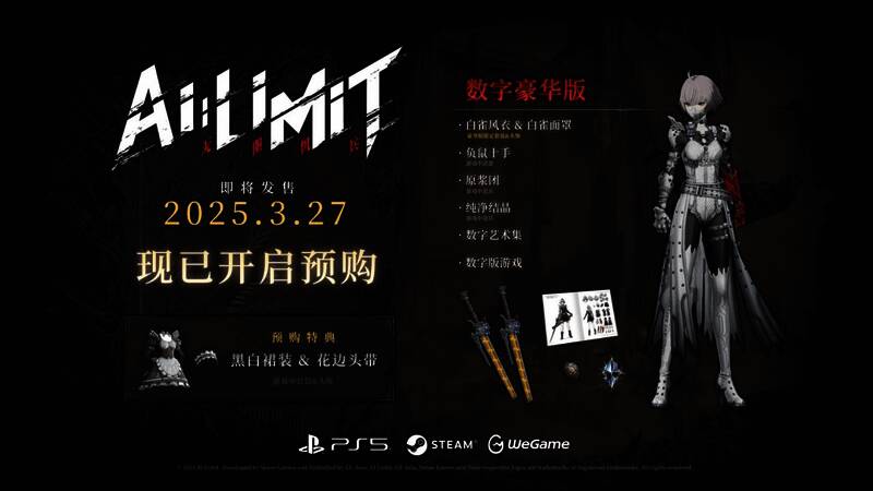 《无限机兵》现已开启预售,Steam国区标准版预售价143.1元,数字豪华版预售价187.2元。现在预售可获得游戏内装备“黑白裙装&花边头带”。感兴趣的玩家还可以在商店页面下载试玩版,上手体验游戏。