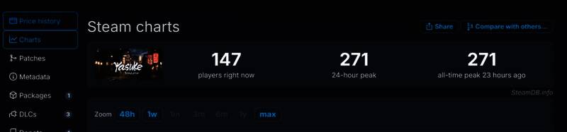 《弥助模拟器》Steam首发即开启了促销,降价15%,当前售价15.3元,作为一个小体量游戏这个价格还是能接受的。不过在线人数方面就比较凄惨了,发售24小时峰值只有271人,当前在线147人。