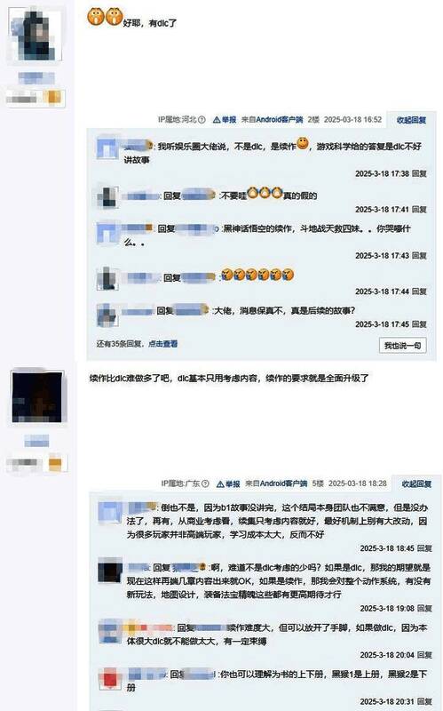在评论区有玩家表示:“大的要来了!”“期待游戏DLC早日推出”“我要大闹天宫”“出续作就得要求创新了,而且现在有钱有时间,就得把内容做完整。”