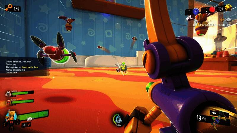 这是一款快节奏Roguelite第一人称射击游戏,使用古怪的武器炸飞捣蛋的玩具!拼装玩具零件,组装你专属的积木爆射英雄,发现强大的技能组合,并探索一座巨大的宅邸。单人畅玩或与好友同乐,在3人联机模式中畅玩!