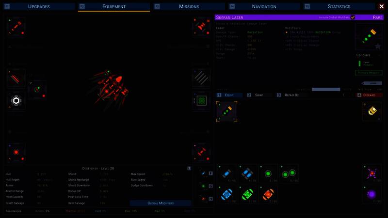 你不仅可以根据自己的游戏偏好构思构筑,同时寻找最合适的装备,还能进入母舰上的船坞设计你的完美飞船。你的飞船最初只是一艘小型护卫舰,但是随着经验积累、等级提升,你可以提升舰船规格,从小型战斗舰变成驱逐舰,再变成巡洋舰,最终变为巨型战舰。