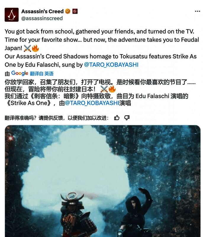 在《刺客信条:影》3月20日上线前,巴西育碧的团队突发奇想,搞了一支特别宣传片,模仿老派特摄剧的风格,比如《假面骑士》《超级战队》那种。