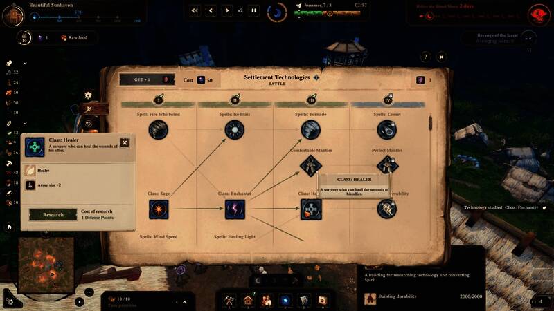 你们定居点的未来取决于你的进展。你需要收集灵能、黑暗碎片、技术和防御点,并利用它们研究新技术,改进制造方法,以掌握农业、建造新建筑,并提高其等级和效率。此外,你还可以解锁新法术、魔法增强、新战士子类、先进盔甲和武器。