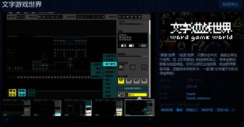 今日(3月18日),《文字游戏》系列新作《文字游戏世界》Steam页面开放,2025年发售,游戏支持简繁体中文,感兴趣的玩家可以点击此处进入商店页面。