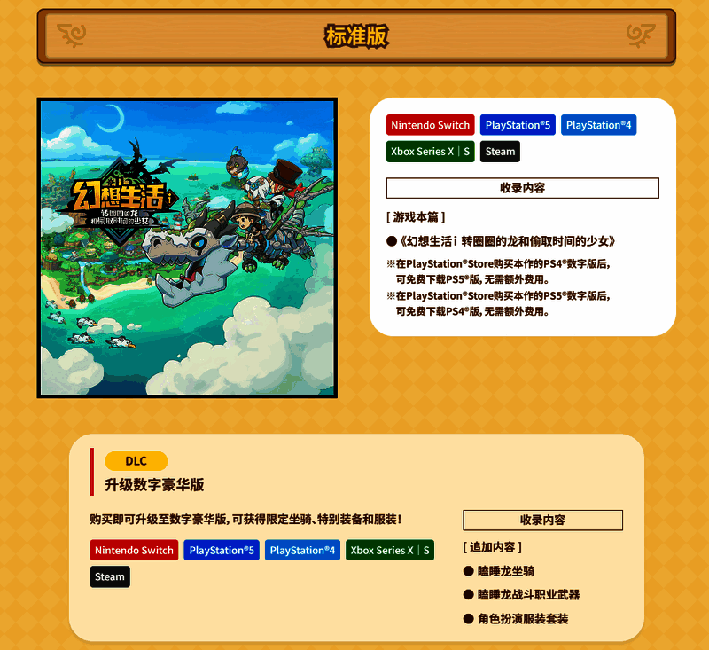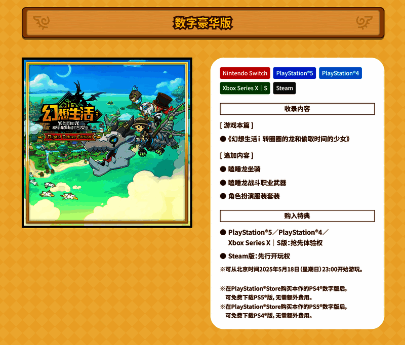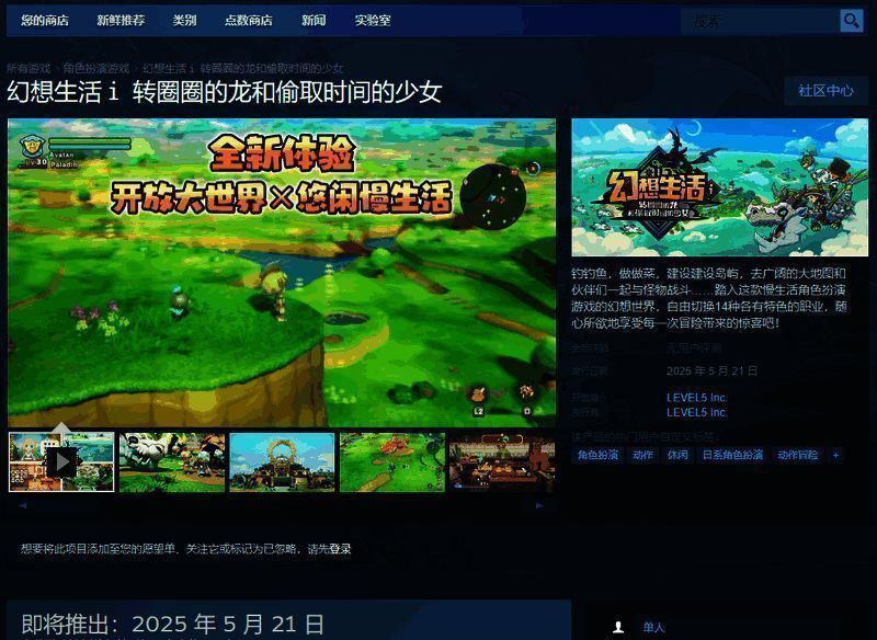 近日,发行商LEVEL-5和开发商LEVEL-5-大阪办事处宣布,《幻想生活i:转圈圈龙和偷取时间的少女》(以下简称《幻想生活i》)现可在PS5&PS4、XboxSeriesX|S和PC(Steam)平台数字预购,Switch平台未开放预购。此外,《幻想生活i》将在5月21日登陆PS5&PS4、XboxSeriesX|S、PC(Steam)和Switch平台,并且支持中文选项。