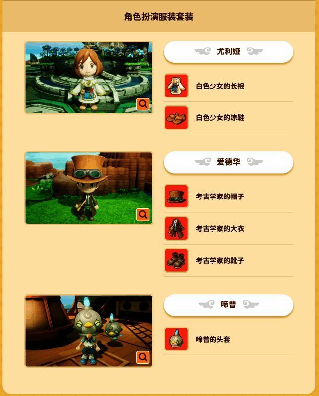 角色扮演服装套装:尤利娅套装、爱德华考古学家套装、啼普(单个头套);