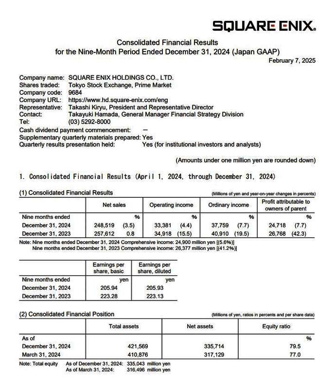 这一消息来自“kabutan”的分析师安田秀树,而在上周SE官方发布了最新的财务报告,虽然未透露《奇异人生:双重曝光》的具体销售数据,但提到其高清游戏部门的收入下降是因为匿名的“新游戏销量低于”去年同期的《最终幻想16》等作品。