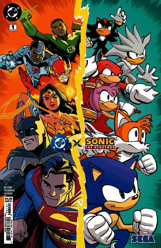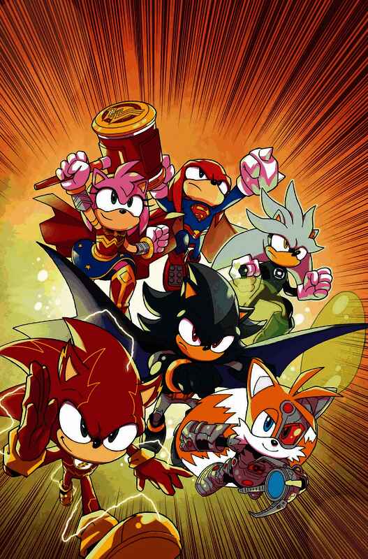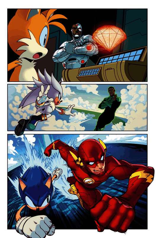 DC Comics和世嘉首次展示了他们合作推出的《正义联盟》与《刺猬索尼克》的漫画系列,其中包括装扮成闪电侠的索尼克,以及装扮成蝙蝠侠的夏特。