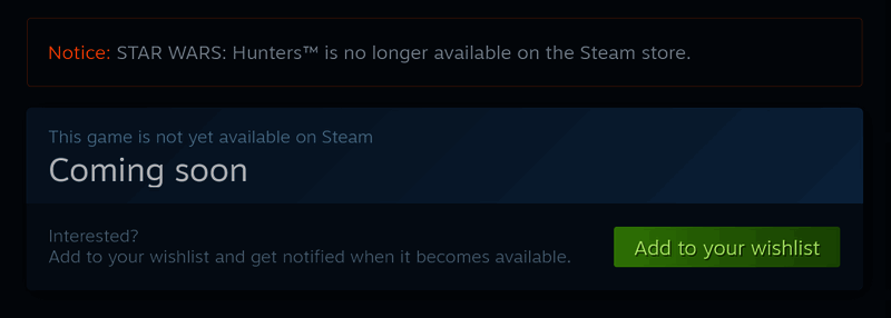 《星球大战:猎人》原定于今年 1 月时在 Steam 推出,随着游戏的停服,该计划似乎也已取消。游戏商店页面最近一次更新是在 1 月 9 日,此前于 12 月进行了测试,并且宣布了抢先体验的延期。Steam 页面目前仍然显示“即将推出”。