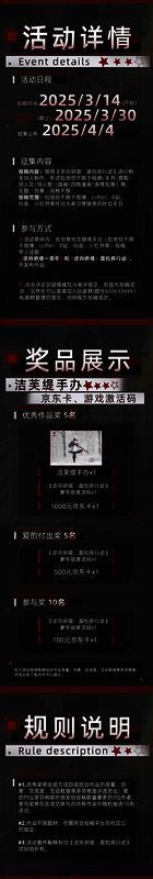 配合本次周年纪念,官方从即日起(3月14日)将开展「一周年同人征集活动」,并准备了洁芙缇手办、游戏激活码等丰厚福利与奖品。