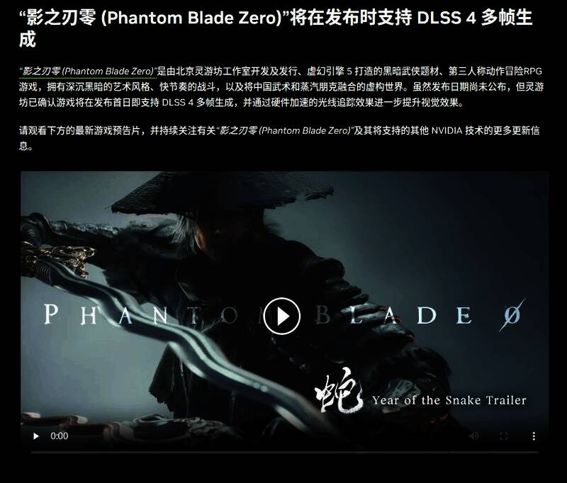 3月14日,英伟达和灵游坊确定了《影之刃零》将在首发时支持DLSS 4多帧生成,并通过硬件加速的光线追踪效果进一步提升视觉效果。