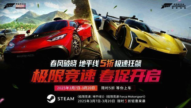 今日,备受瞩目的赛车游戏《Forza Motorsport 极限竞速》与《极限竞速:地平线5》在Steam商城正式开启春季促销活动,两款版本均可享受五折的超值优惠。2025年3月14日至3月20日期间,《Forza Motorsport 极限竞速》标准版149元,豪华版174元,尊享版199元;《极限竞速:地平线5》标准版仅需124元,豪华版154.5元,终极版194.5元即可拿下。