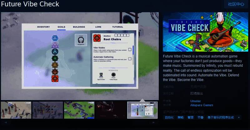 今日(3月13日),音乐自动化游戏《Future Vibe Check》Steam页面开放,发售日待定,游戏暂不支持中文,感兴趣的玩家可以点击此处进入商店页面。