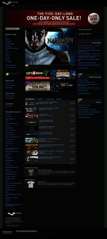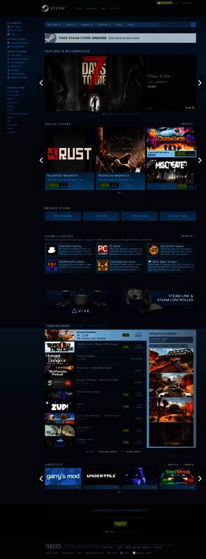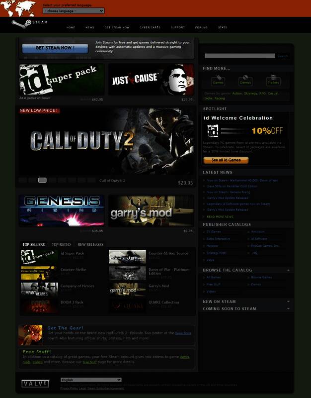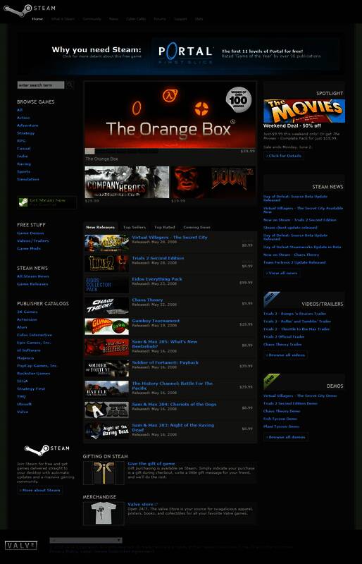 Steam是如今全球最大的数字PC商店,由V社最初于2003年9月推出。Steam刚上线时仅仅是服务于V社自家的PC游戏,为这些游戏自动提供更新。但在2005年底,进行了扩张,发展成第三方游戏分销平台。