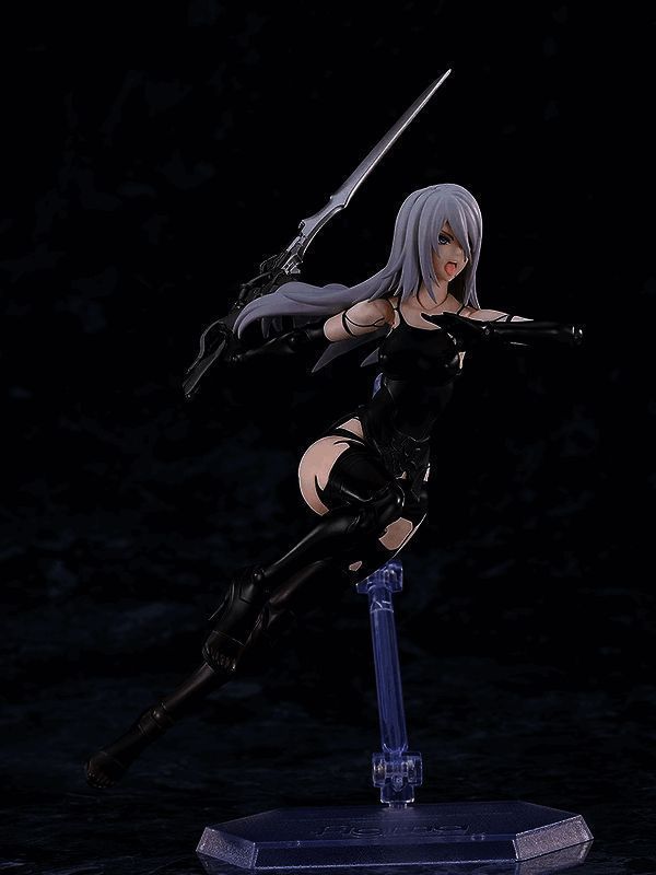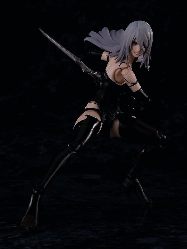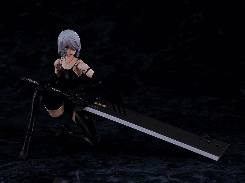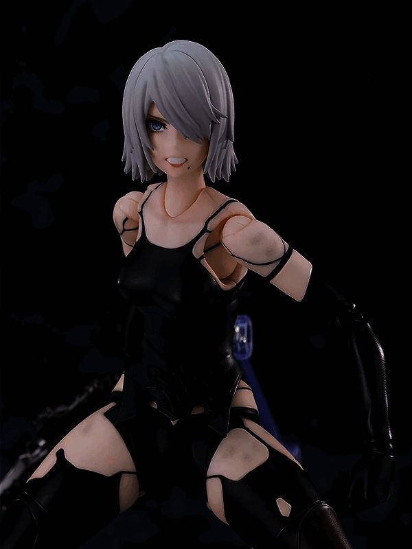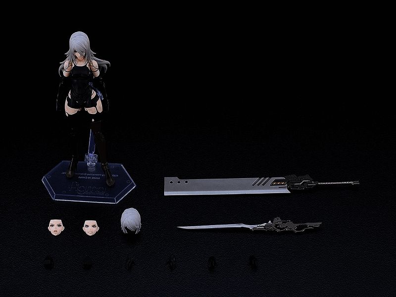 除了可以为A2设定不同的动作或休息姿势的基础站台外,这个手办还配备了多种手部零件和三种不同的面部贴片;标准面部、紧闭嘴巴的面部以及正在大喊的面部。此外,还包括一个小型剑和大剑,以及多种不同的头发零件,如动态长发和短发。