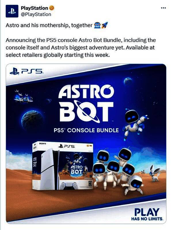 根据官方社媒的消息,索尼宣布将推出全新《宇宙机器人》PS5主机捆绑包,内容包含一份《宇宙机器人》游戏和一台PS5(轻薄款)主机,预计本周内在全球发售。值得注意的是,该捆绑包并非限量版,只是主机和游戏副本的组合,所以也不会包含任何硬件主题或皮肤。