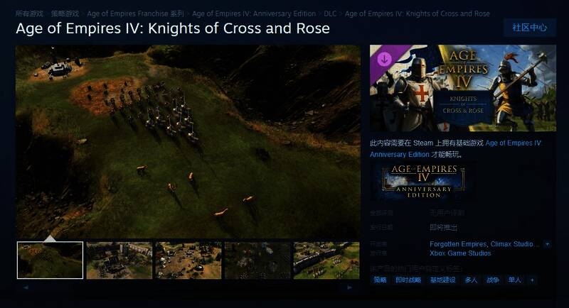 3月11日,即时战略游戏《帝国时代4》的新DLC“十字与玫瑰骑士”Steam商店页面正式上线,该DLC预计将于今年春季推出,预购即将开启,可享受15%折扣。