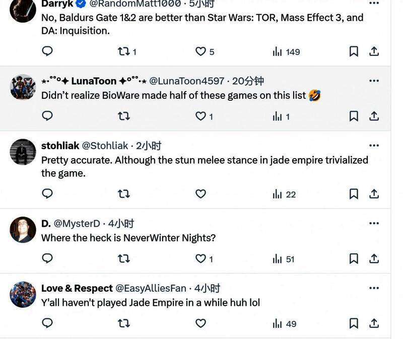 对于这份榜单,有些国外网友并不认可,他们认为《博德之门1&2》比《星球大战:旧共和国》、《质量效应3》和《龙腾世纪:审判》更好。