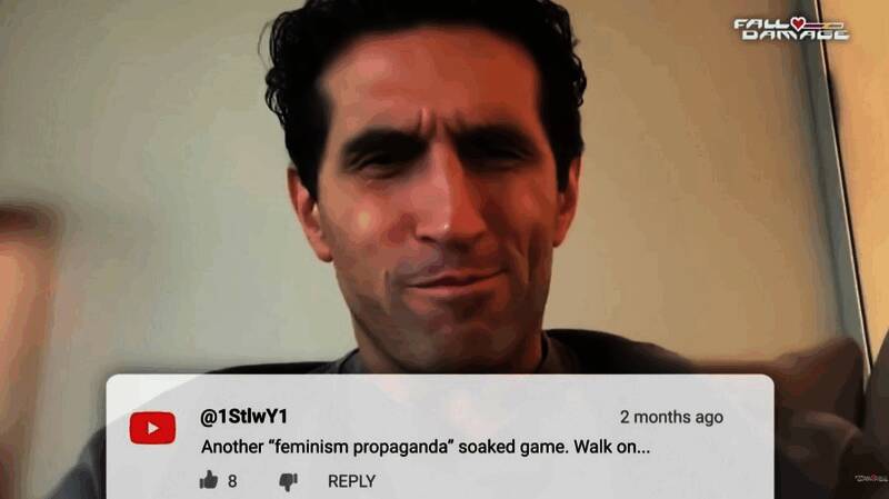 这条评论出现在“Fall Damage”频道上该游戏预告片下方的评论区,他正是对此作出回应。用户名为1StlwY1的人写道:“又一款充斥着‘女权主义宣传’的游戏,无视……”
