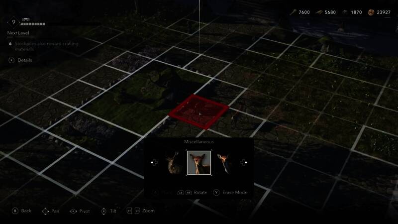 放置每个物品都需要三种不同的资源,这些资源遍布日本:木材、矿物和农作物。每座新建筑或升级都需要固定数量的资源,以及游戏货币(称为“mons”)。