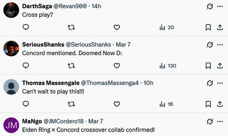 由于配文中使用了“Concord”一词(《星鸣特攻》英文名),被许多玩家调侃。有人表示:“游戏要联动《星鸣特攻》?”“无语了,谁用了Concord这个词都会暴死”。