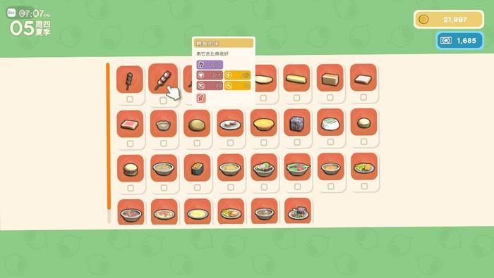 当玩家捕到蝴蝶钓到大鱼时,会将战利品举到面前,看到这个画面很难不让人联想到《动森》。其实《金垦小镇》应该有很大的灵感是来源于那部任天堂经典游戏的,从美术风格到休闲的内核玩法都有些类似,然而《金垦小镇》却并不是完全照抄移植,而是在类似的游戏类型上添加了许多细枝末节的玩法,形成了许多它独有的新东西。