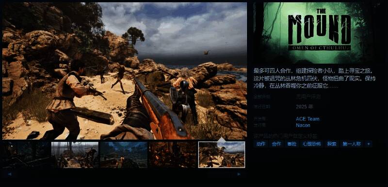 今日(3月7日),多人合作恐怖游戏《The Mound: Omen of Cthulhu》Steam页面上线,预计于2025年发售,暂不支持中文,感兴趣的玩家可以点击此处进入商店页面。