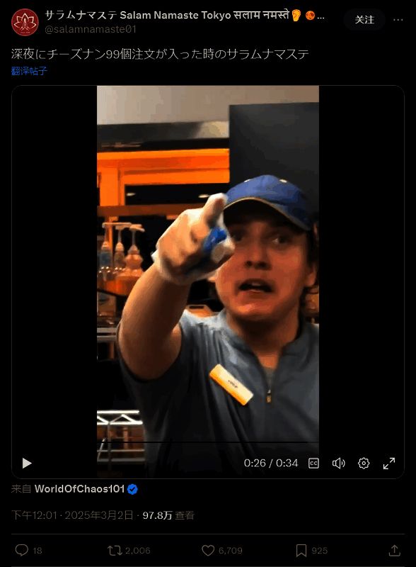 日本东京的一家尼泊尔餐厅 Slam Namaste Tokyo 就分享了一段有趣的视频,显示他们在深夜的收到了 99 个奶酪烤饼的订单,导致员工都“发疯”了,对着不断打印的订单大喊“停下来”。