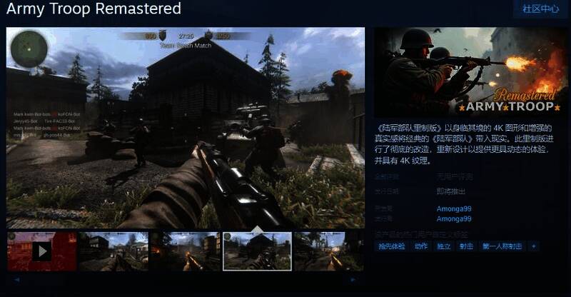 今日(3月6日),FPS 射击游戏《陆军部队重制版》Steam页面上线,发售日未定,游戏支持简繁体中文,感兴趣的玩家可以点击此处进入商店页面。
