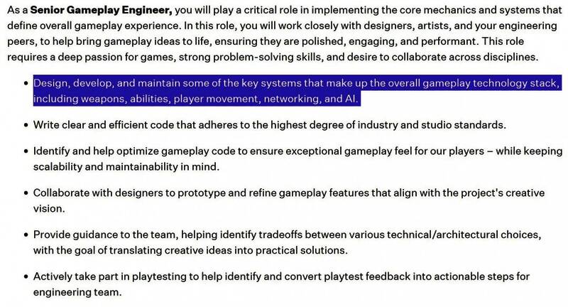 其他细节还提到了开发关键系统,包括武器,能力,玩家移动,网络和AI。很明显,SIE正在开发一个英雄射击或专注于英雄的动作合作游戏。