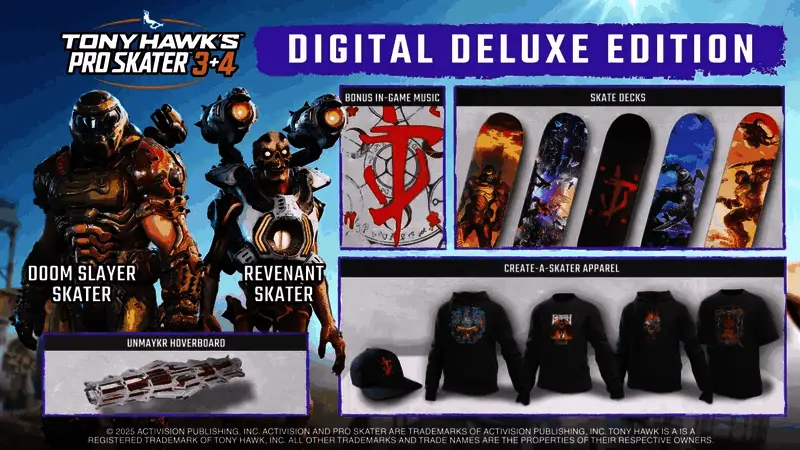 由IronGalaxy开发的滑板游戏《托尼·霍克职业滑板3+4重制版》正式公布,首个预告片同步公开,该作将于2025年7月11日发布,同时购入了豪华或典藏版游戏的玩家可从7月8日开始提前三天游玩。