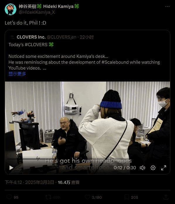 神谷英树目前正在新的游戏工作室 CLOVERS,开发 TGA 上宣布的《大神》续作。最近工作室的推特发布了一段新视频,展示神谷一边观看《龙鳞化身》的老视频,一边“回忆开发过程”。工作室在社交媒体上透露称,神谷“仍为它感到自豪”,并且仍有意愿“有一天能再次制作它”。